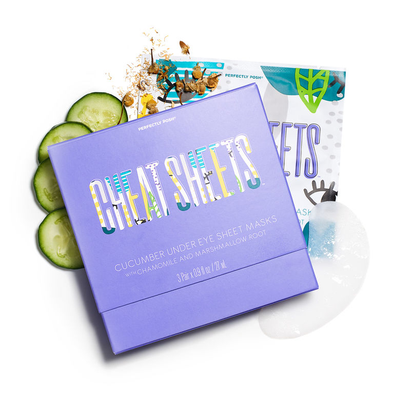 Soothe and brighten eyes by removing a pair of Cheat Sheets from its protective film and place patches beneath the bottom lash lines. Leave on for 10–15 minutes, then gently peel off and pat excess serum into skin; no rinsing required. For extra pampering, apply your favorite mask to the rest of your face while your Cheat Sheets do their magic.