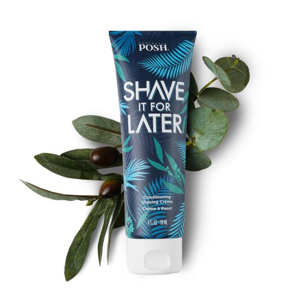 Perfectly Posh Shave it for later shave cream – A conditioning shaving crème that provides a gentler, closer shave wherever you use it.